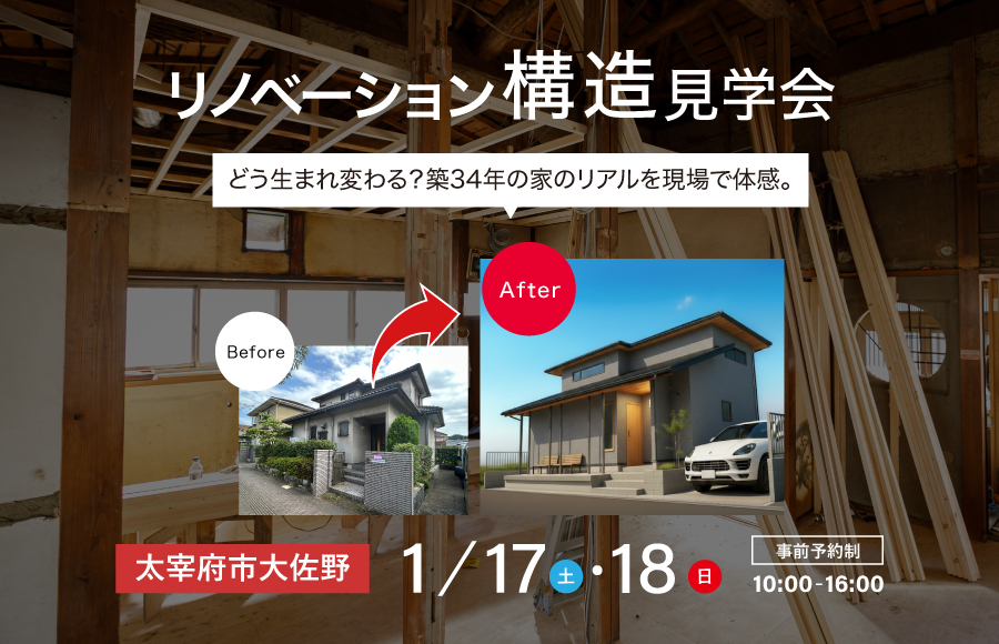 太宰府市大佐野リノベーションモデルハウス構造見学会開催!【2日間限定】